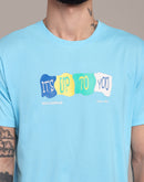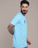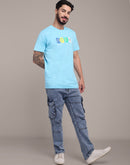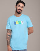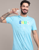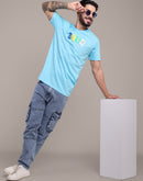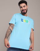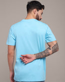 Men's Sky Blue Printed Anti-Stain Cotton Round-Neck T-Shirt