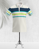 Upgrade your casual wardrobe with the SD04 F Open Polo Shirt, a perfect blend of sporty style and everyday comfort. Featuring a modern white base with bold horizontal stripes in navy blue, teal, and lime green, this polo exudes a fresh, dynamic appeal. The open placket design and finely ribbed collar add a touch of elegance while maintaining a relaxed fit.