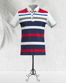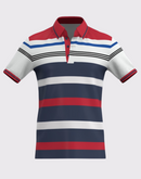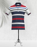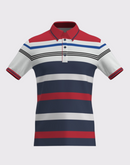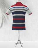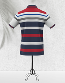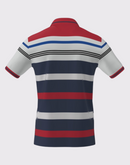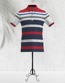 Elevate your casual wear with the VANDEE - Red Classic Striped Polo T-Shirt, a statement of modern sophistication and innovation. Designed for the stylish and active individual, this polo features a bold horizontal stripe pattern in navy blue, white, red, and black, ensuring a striking yet refined look. The standout red collar and sleeve trims add a sporty edge, making it perfect for any occasion—whether it's a casual outing, an evening gathering, or a day at work.