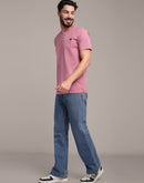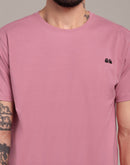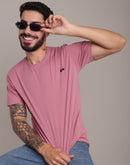 VANDEE Men's Mauve Anti-Stain Cotton Round Neck T-Shirt