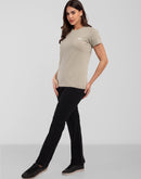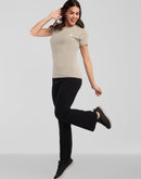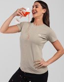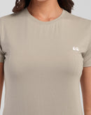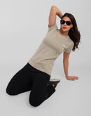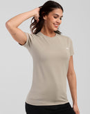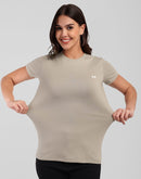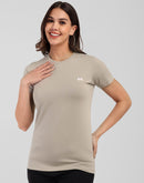 Woman Cement Gray Anti-Stain Cotton Round-Neck T-Shirt