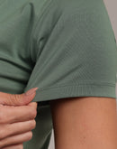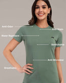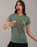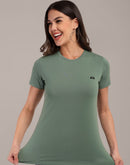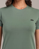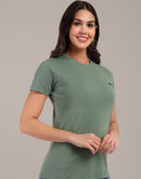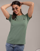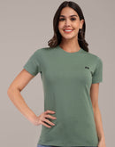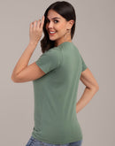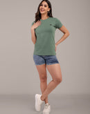 Woman Green Anti-Stain Cotton Round-Neck T-Shirt
