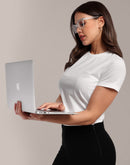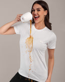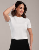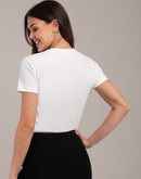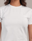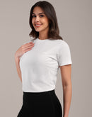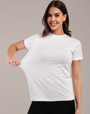Woman White Anti-Stain Cotton Round-Neck T-Shirt